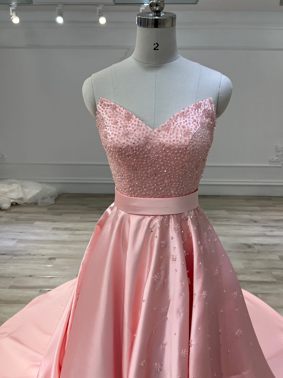 Malka pink satin sweetheart gown فستان خطوبة بالساتان الزهري